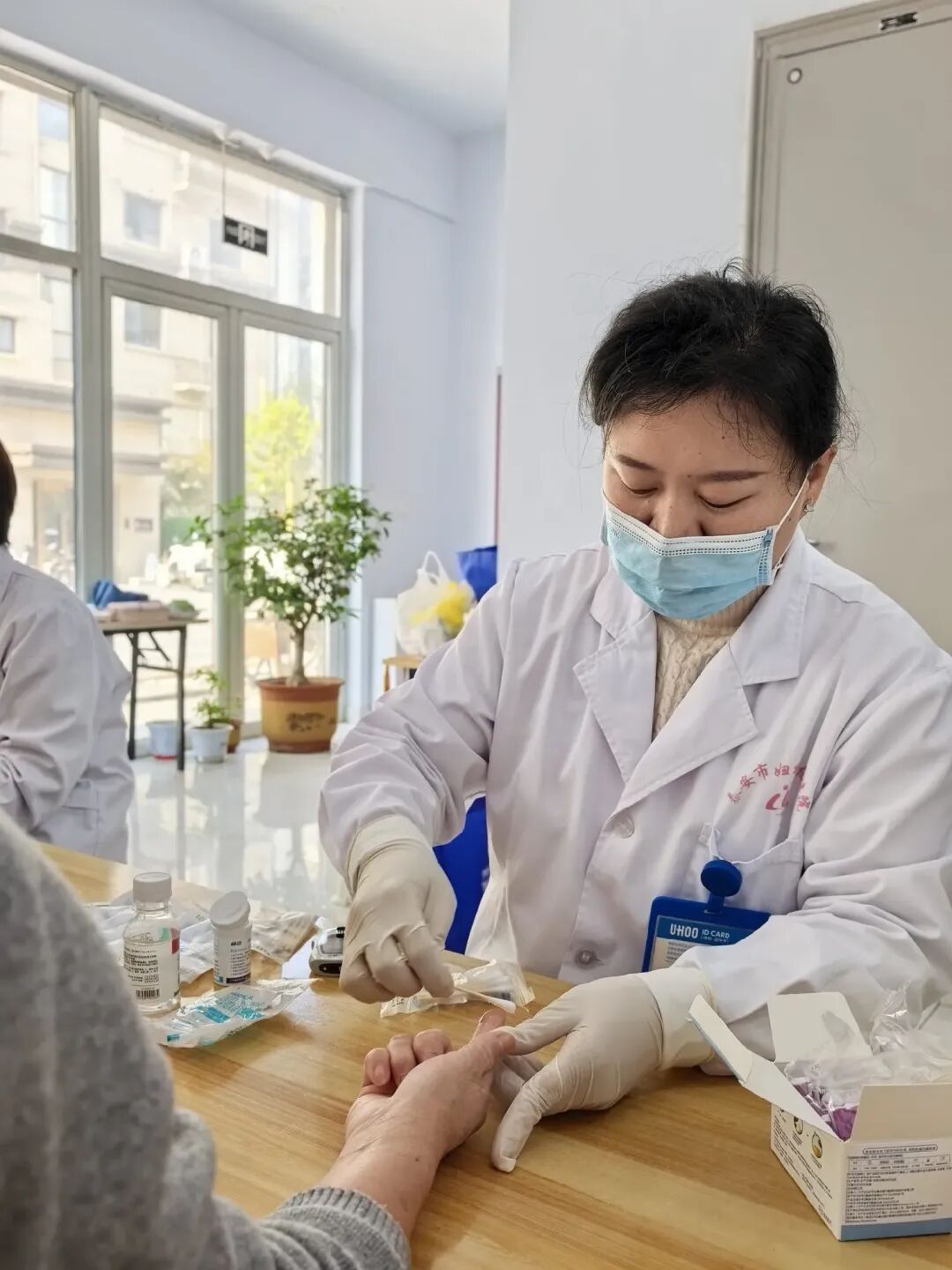 义诊现场秩序井然,人气满满。医护人员早早搭建诊疗咨询台,备好血压仪、血糖仪等专业设备,耐心接待每一位前来咨询问诊的居民。工作人员贴心为中老年居民提供免费血压、血糖检测,细致记录相关数据,耐心讲解血压血糖日常管控要点,提醒高危人群定期筛查、科学干预。